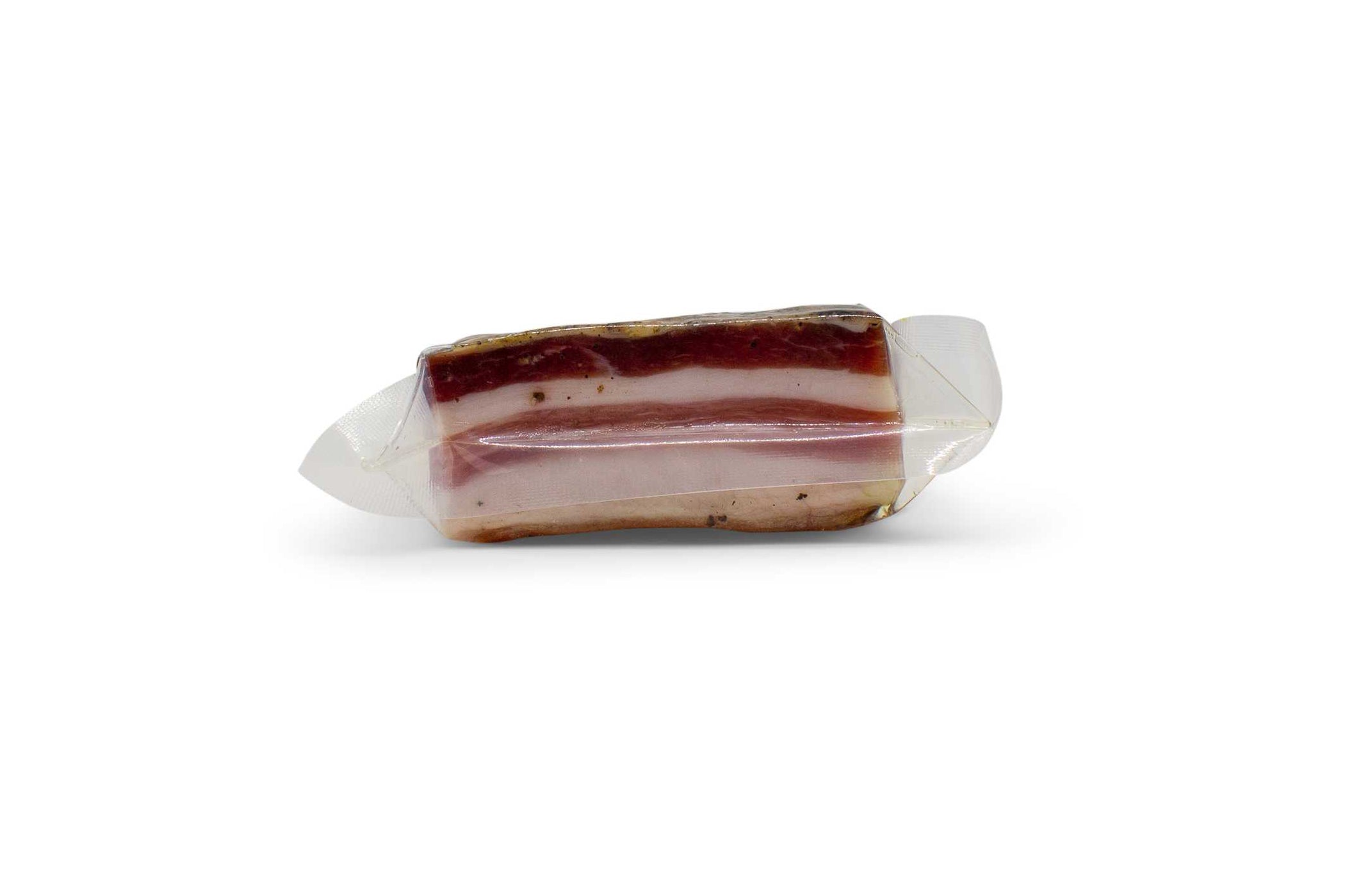 Si tratta di un salume stagionato, ricavato dalla pancia del suino magro che si pregia di un metodo antico di lavorazione manuale. Il sapore, deciso e delicato ad un tempo, lascia il palato asciutto con un gradevole gusto.