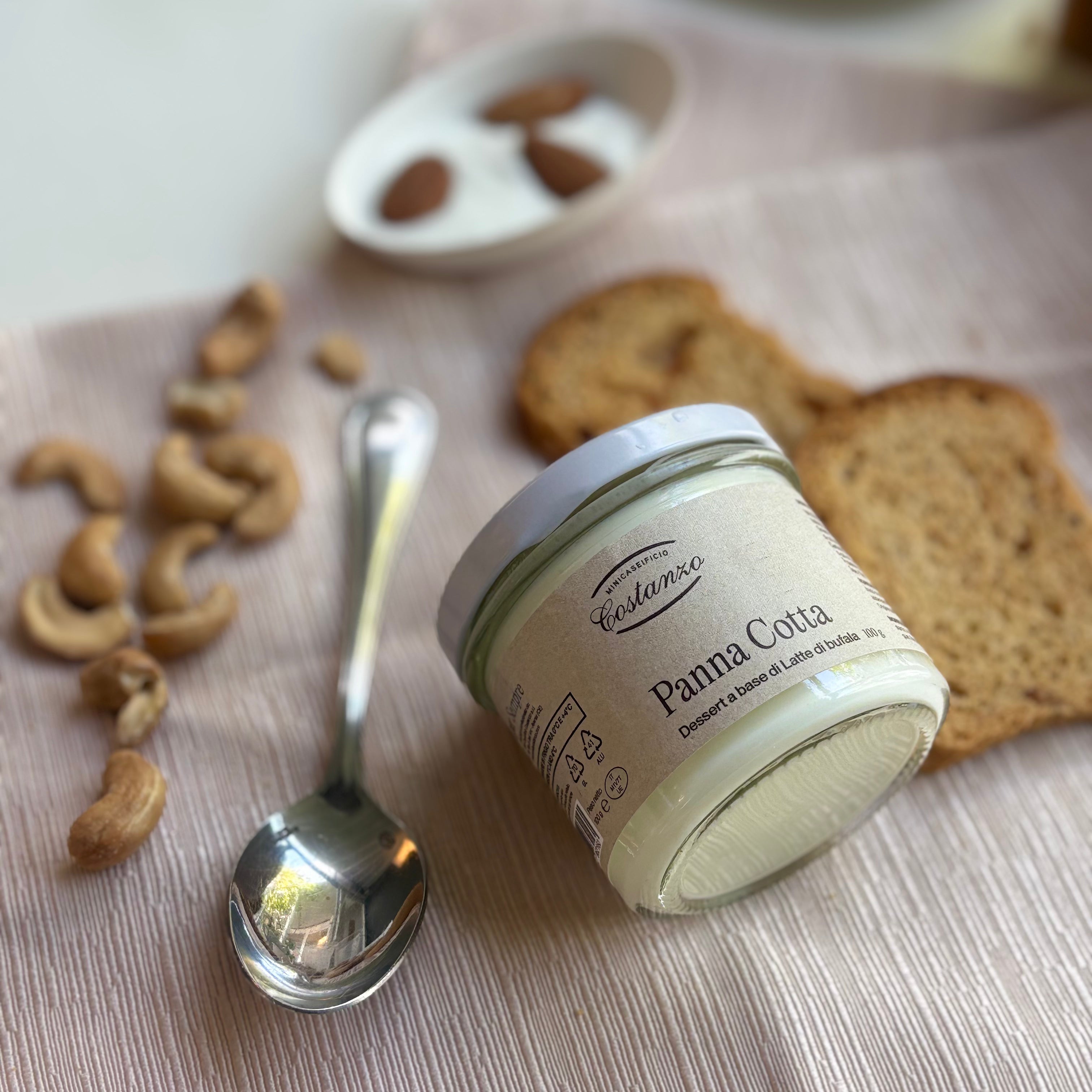INGREDIENTI: latte di bufala pastorizzato 87%, preparato per panna cotta 13% (zucchero, destrosio, amido modificato di mais, grassi vegetali (cocco), proteine del latte, sciroppo di glucosio in polvere, addensanti: carragenina, gomma xantano, aromi.