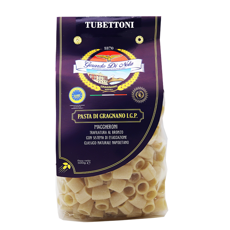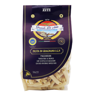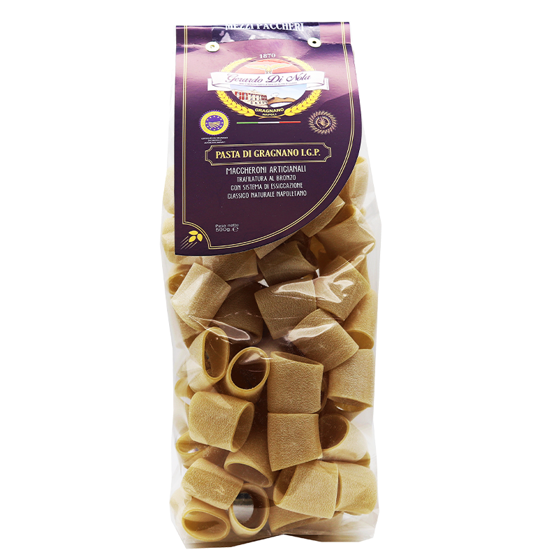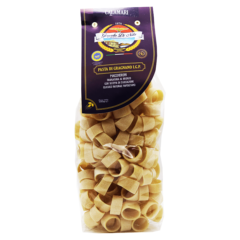 Pasta di Gragnano I.G.P- Artisan Pasta. Italian durum wheat semolina pasta. Gerardo di Nola pasta is made with bronze dies and is dried for a long time. This produces a pasta that is rough enough, porous enough with a lively, full-bodied texture.