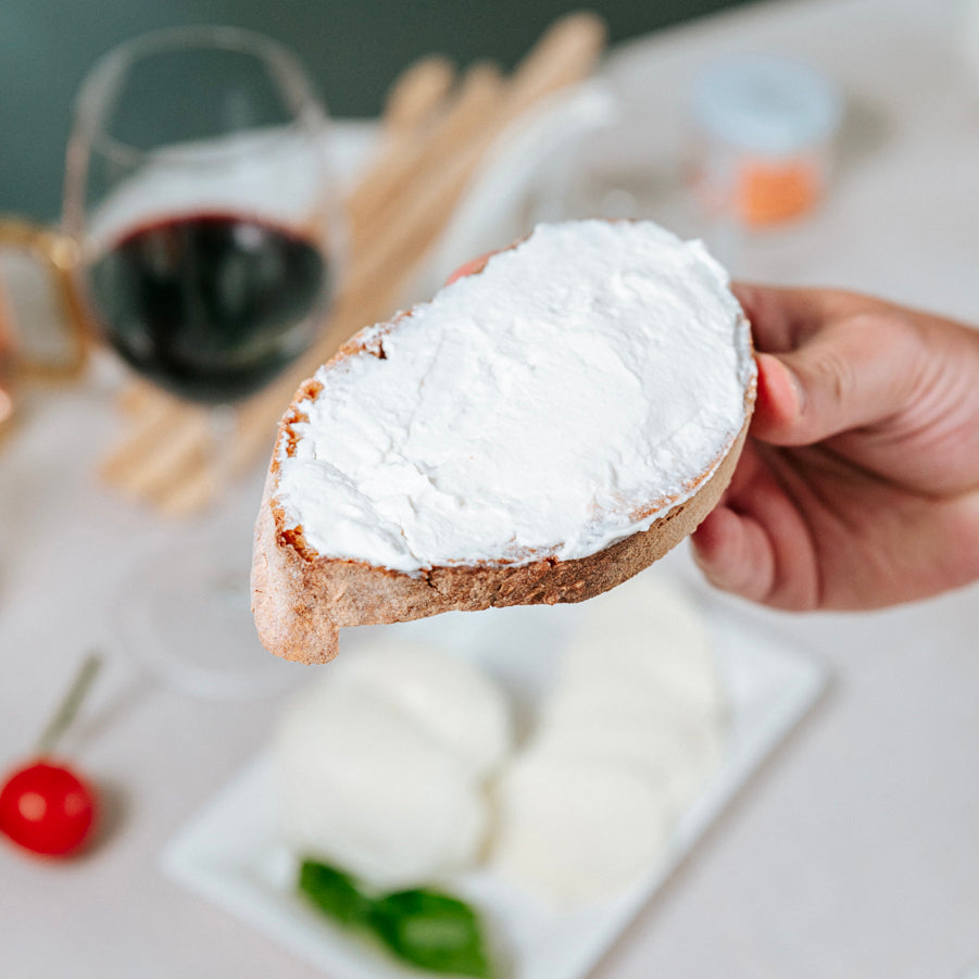 La ricotta di bufala in salvietta è prodotta con siero di latte di bufala pastorizzato, crema di latte di bufala pastorizzata, prodotta da noi, nel nostro caseificio, con il nostro stesso latte di bufala e sale.