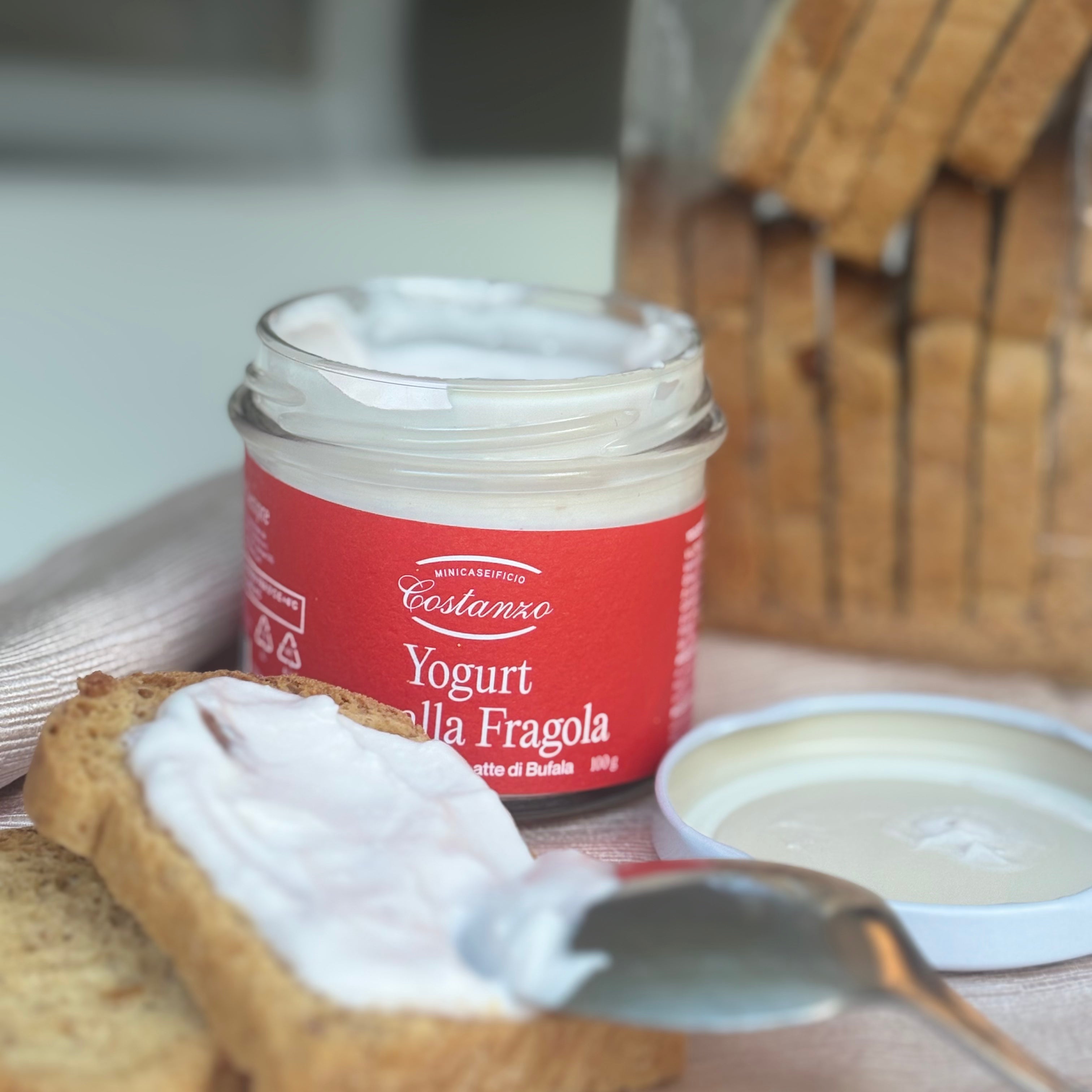 INGREDIENTI: Yogurt intero di latte di bufala 87% (latte di bufala intero pastorizzato e fermenti lattici vivi, Lactobacillus bulgaricus, Streptococcus thermophilus), preparazione di frutta alla fragola 13% (zucchero, fragola 33%, acqua, gelificanti: E 440 pectina, concentrato di sambuco, acidificanti: E330 acido citrico, conservanti: E 202 sorbato di potassio, aromi).