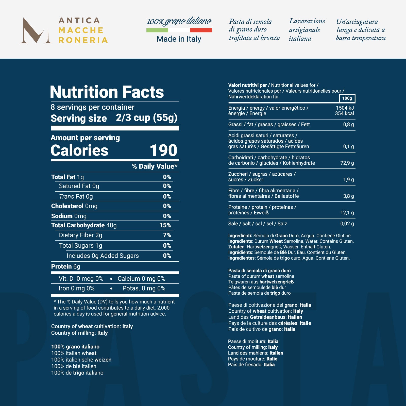 Data la lavorazione artigianale e la delicata essiccazione a bassa temperatura, i tempi di cottura possono variare.