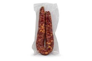 La salsiccia artigianale è realizzata con polpa scelta di suino insaccata in budello con l'aggiunta di sale, pepe nero, peperoncino e altre spezie. Il processo di stagionatura si completa non prima di 6 settimane, in cui il prodotto raggiunge una maturazione ottimale che garantisce qualità nutrizionale e dietetiche eccezionali.